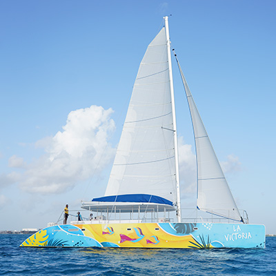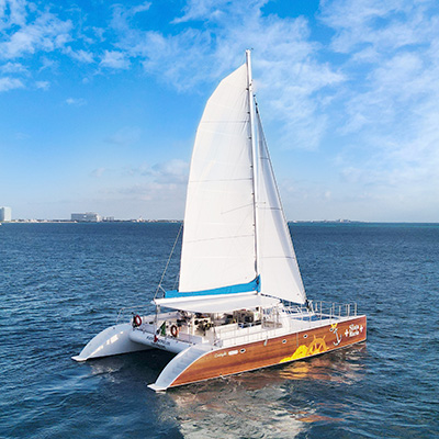 Conoce las maravillas que tiene para ti el Caribe Mexicano con el mejor tour de catamarán. Tendrás la oportunidad de hacer snorkel en uno de los arrecifes más hermosos: El Meco. Disfruta de una comida buffet y barra libre nacional en la “Isla Discovery”, un hermoso lugar donde te podrás relajar en un camastro para tomar el sol y utilizar sus diversas instalaciones como albercas. Además, podrás conocer el centro de la Isla. Isla Mujeres es uno de los tres Pueblos Mágicos en Quintana Roo.