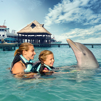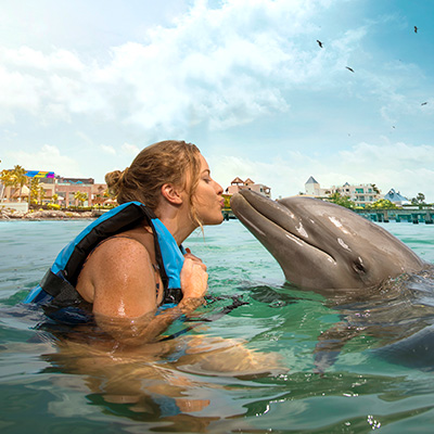 Dolphin Discovery-Isla Mujeres, es el hábitat natural de delfines más grande de Latinoamérica, justo al sur de la isla, rodeada por arena blanca, palmeras verdes y un mar turquesa cristalino. Podrás disfrutar de diferentes actividades como abrazar, nadar en la barriga de un delfín, e incluso sentir la emoción de ser empujados por delfines, también aprenderás la importancia del cuidado y protección de uno de los animales más inteligentes e increíbles. Los especialistas en mamíferos marinos te enseñarán muchos datos sobre estas especies, así como su dieta y programas de cuidado personalizados. También podrás degustar la comida mexicana tradicional, refrescarte con bebidas y conocer esta maravillosa Isla.