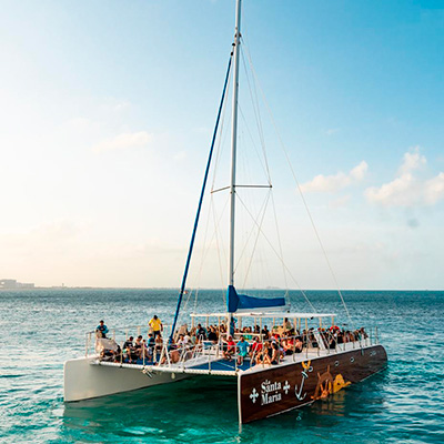 Conoce las maravillas que tiene para ti el Caribe Mexicano con el mejor tour de catamarán. Tendrás la oportunidad de hacer snorkel en uno de los arrecifes más hermosos: El Meco. Disfruta de una comida buffet y barra libre nacional en la “Isla Discovery”, un hermoso lugar donde te podrás relajar en un camastro para tomar el sol y utilizar sus diversas instalaciones como albercas. Además, podrás conocer el centro de la Isla. Isla Mujeres es uno de los tres Pueblos Mágicos en Quintana Roo.